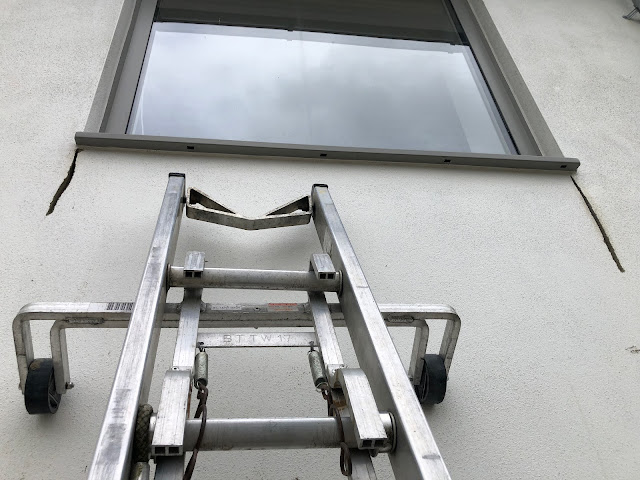 After removing the grime, we found several hairline cracks in the render. We decided to repair these to prevent any water penetrating in future.